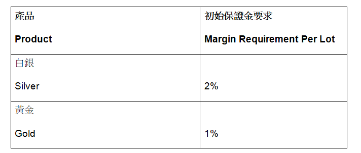 因應近期市場狀況變化,本公司將自 202622日起,對以下產品的保證金要求作出調整。